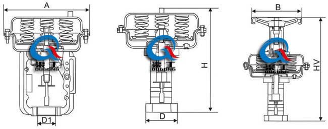 ZHB型:反作用,當信號壓力增加時,閥桿部件向上移。